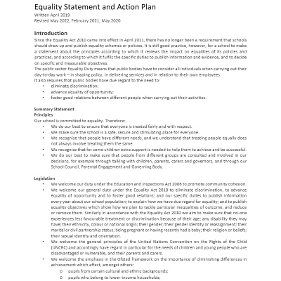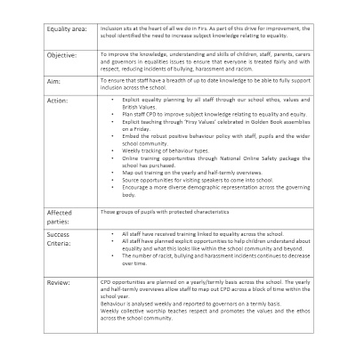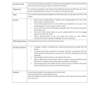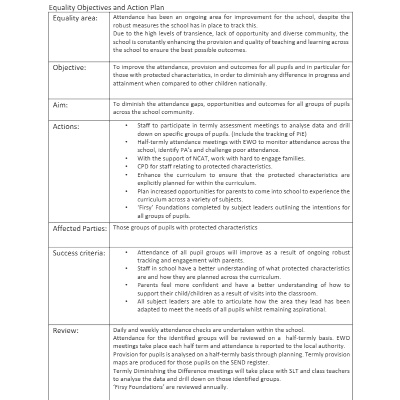 Please see our equality objectives below. The document is multiple pages long, please use the arrows to scroll through the document.