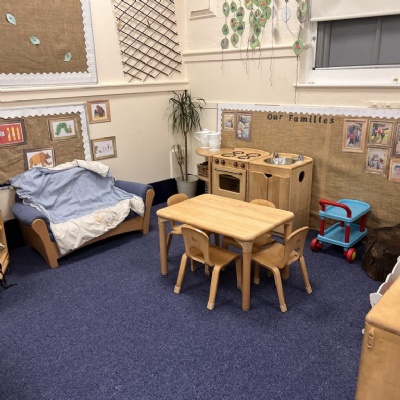 We are very lucky to have a large learning area for the children to use. We have an indoor area where the children can play with the construction materials, make and create, build up their hand strength using the play dough, be imaginative in the home corner, have snack and be investigative.