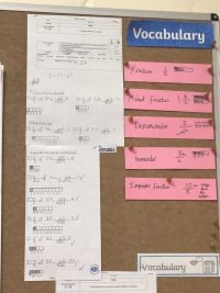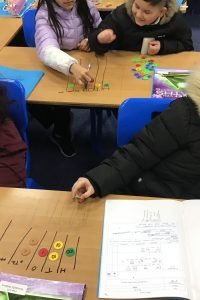 We have maths displayed all around our school: in our classrooms and in our halls. We use our maths walls in the classroom to celebrate work and model learning for during the lesson. These are referred back to every lesson and in following lessons when discussing our prior learning. Children are also encouraged to use the working walls as part of our “5Bs” for independent learning. We try to use concrete examples where possible to support our children in their learning. As part of mastery maths and the White Rose curriculum, children are exposed to a Concrete – Pictorial – Abstract progression of learning throughout a set of lessons or across year groups.