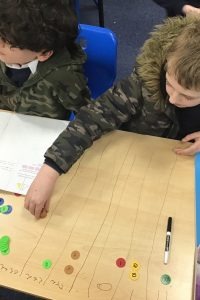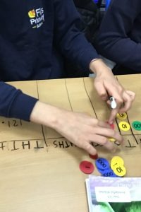 Tackling Tables and Tackling Add and Subtract is used throughout the school to help children develop key number skills. It is an interactive, team game where children work in groups of 2 or three to test each other on multiplication and division or addition and subtraction facts. For both sets there are three different levels and children are baselined and tested to progress through the levels.