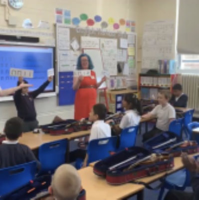 In Year 4 the children take part in the Wider Ops programme where all children have weekly music lessons to learn the violin. Within these lessons children are also taught about the inter-related dimensions within music and how to use them effectively when playing and performing. Children are then given the opportunity to display their talent alongside the Halle Orchestra at Derby Arena in July.