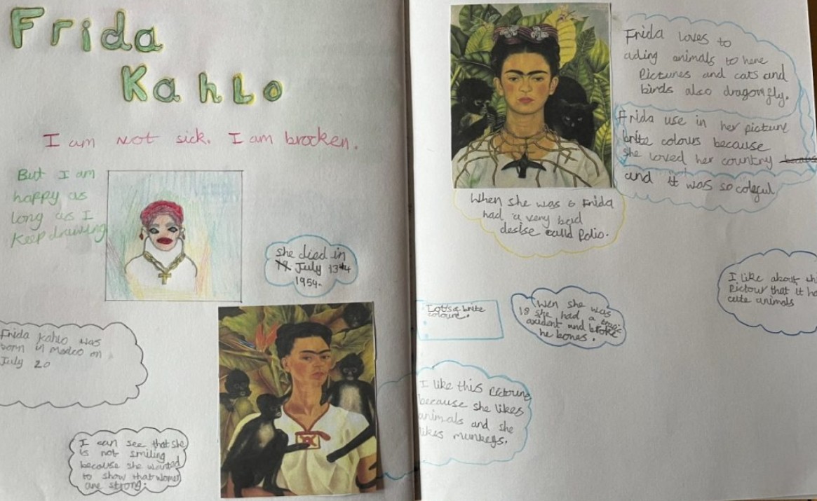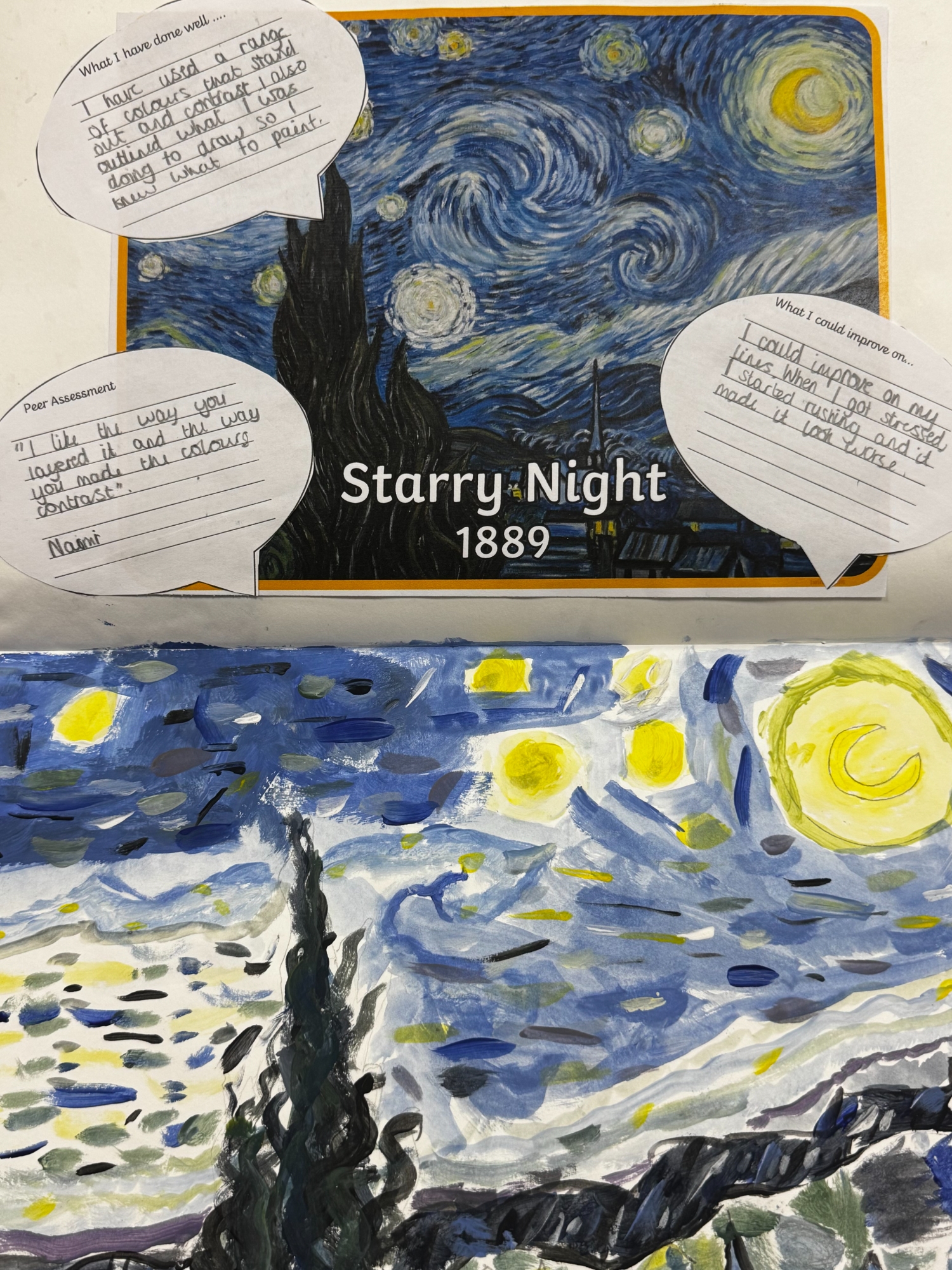 Afterwards, children then apply these skills to create their own artwork, inspired by the style or techniques studied. Teachers model processes and outcomes to support learning, while allowing children the freedom to develop their own ideas and creative responses.