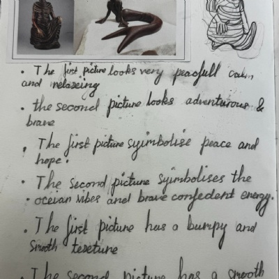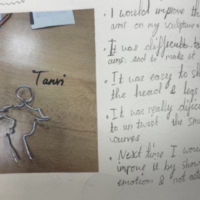 Finally, children evaluate their own work, identifying elements they are pleased with and areas they would improve. They also take part in peer evaluation, offering thoughtful feedback on each other’s work. This may be verbal or be recorded through speech bubbles, annotations or scribed comments in their sketchbooks, supporting both reflection and oracy.